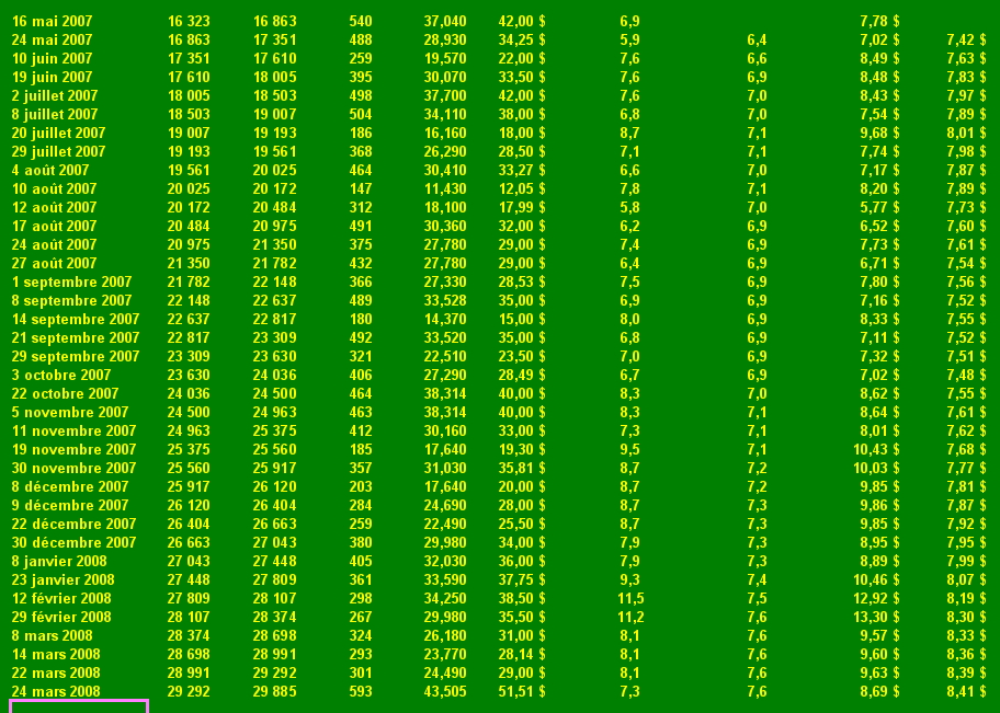 Pour ne pas faire une image trop grosse je n'ai pas mis les libellés de colonne, alors voilà